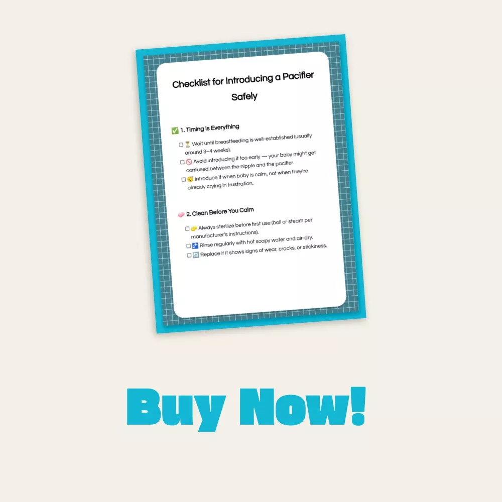 Give your baby comfort, and give yourself confidence. Download the Checklist for Introducing a Pacifier Safely today and enjoy peace of mind knowing you’re doing it the right way. Make your parenting journey calmer, safer, and more connected—one gentle step at a time.