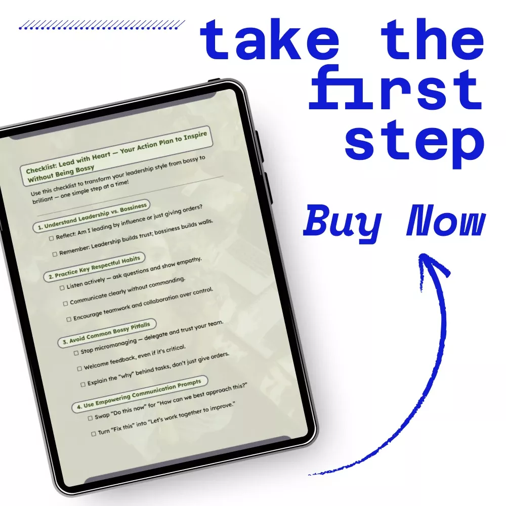 If you’re ready to inspire without intimidating and lead without being bossy, this checklist is your next step. Download your digital checklist now and start building a leadership style people respect, trust, and want to follow.