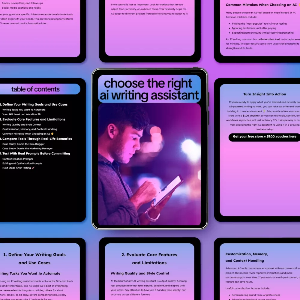Struggling to choose the perfect AI writing assistant for your needs? Our Choose the Right AI Writing Assistant guide is the ultimate resource to help you make an informed decision. Whether you’re a solo blogger, content creator, or marketing manager, this digital download will help you navigate the world of AI writing tools to find the one that fits your writing goals, workflow, and unique use case. If you’re wondering how to choose an AI writing assistant, this guide is your key to success!