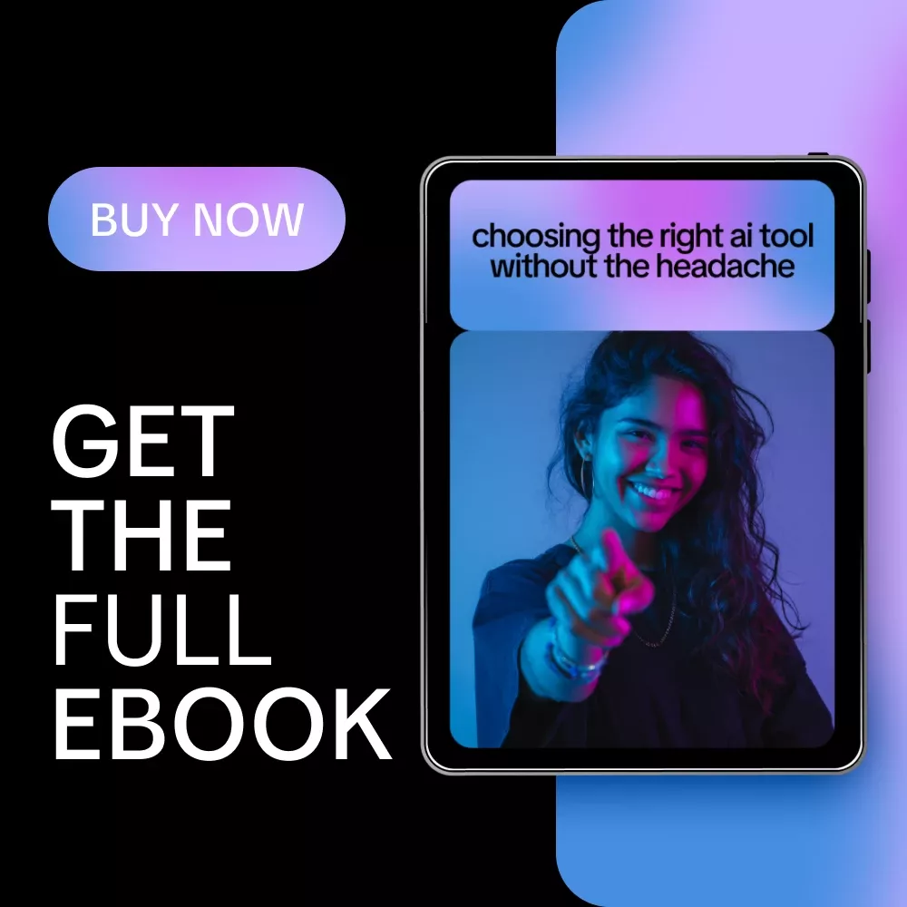 Unlike most AI guides, this eBook doesn’t push specific tools or hype trends. It focuses on thinking clearly about your work first, then choosing tools that actually support it. You’ll learn a repeatable system you can apply as new tools appear, so you’re never starting from scratch again.