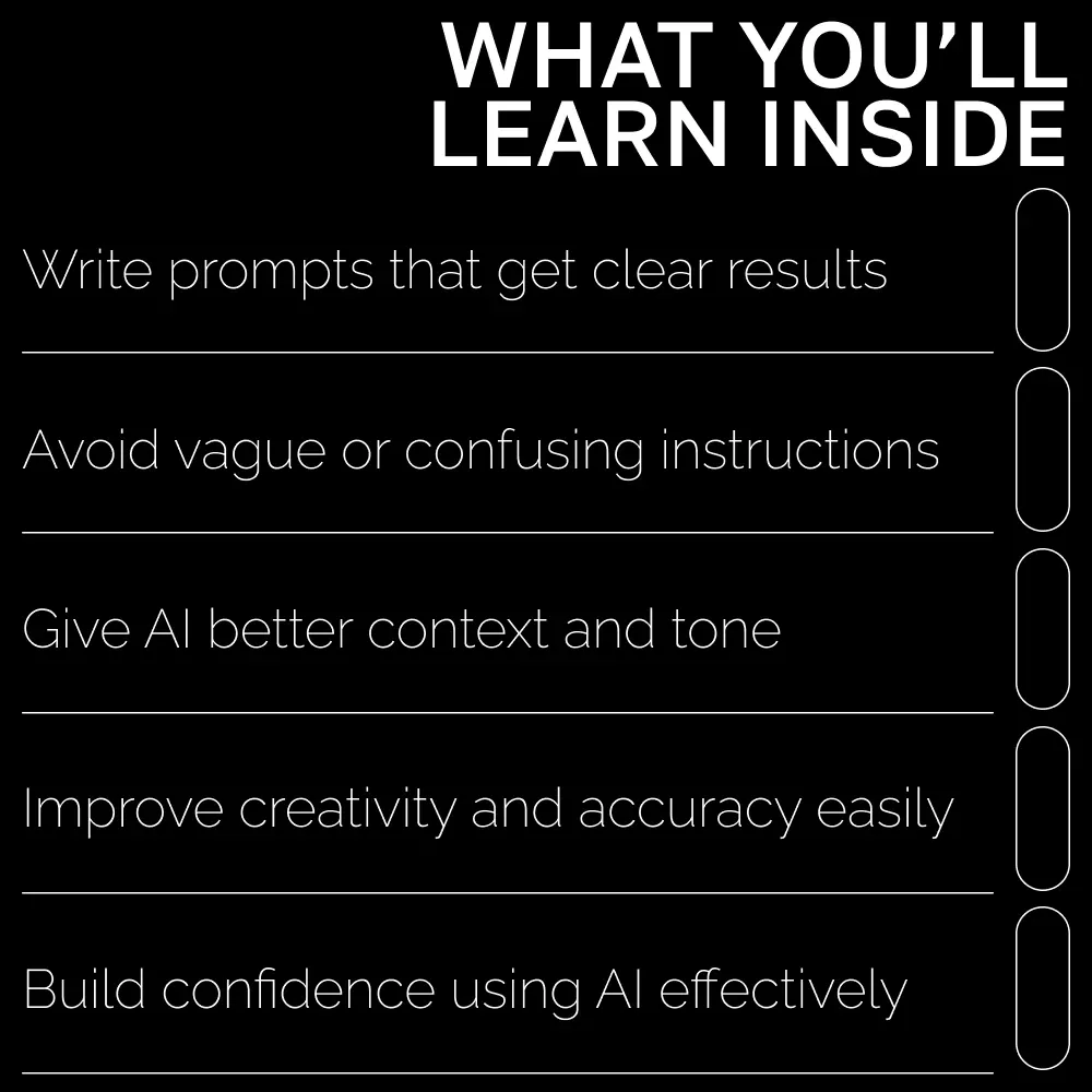 - Develop confidence in how to give clear instructions to AI in any situation.
