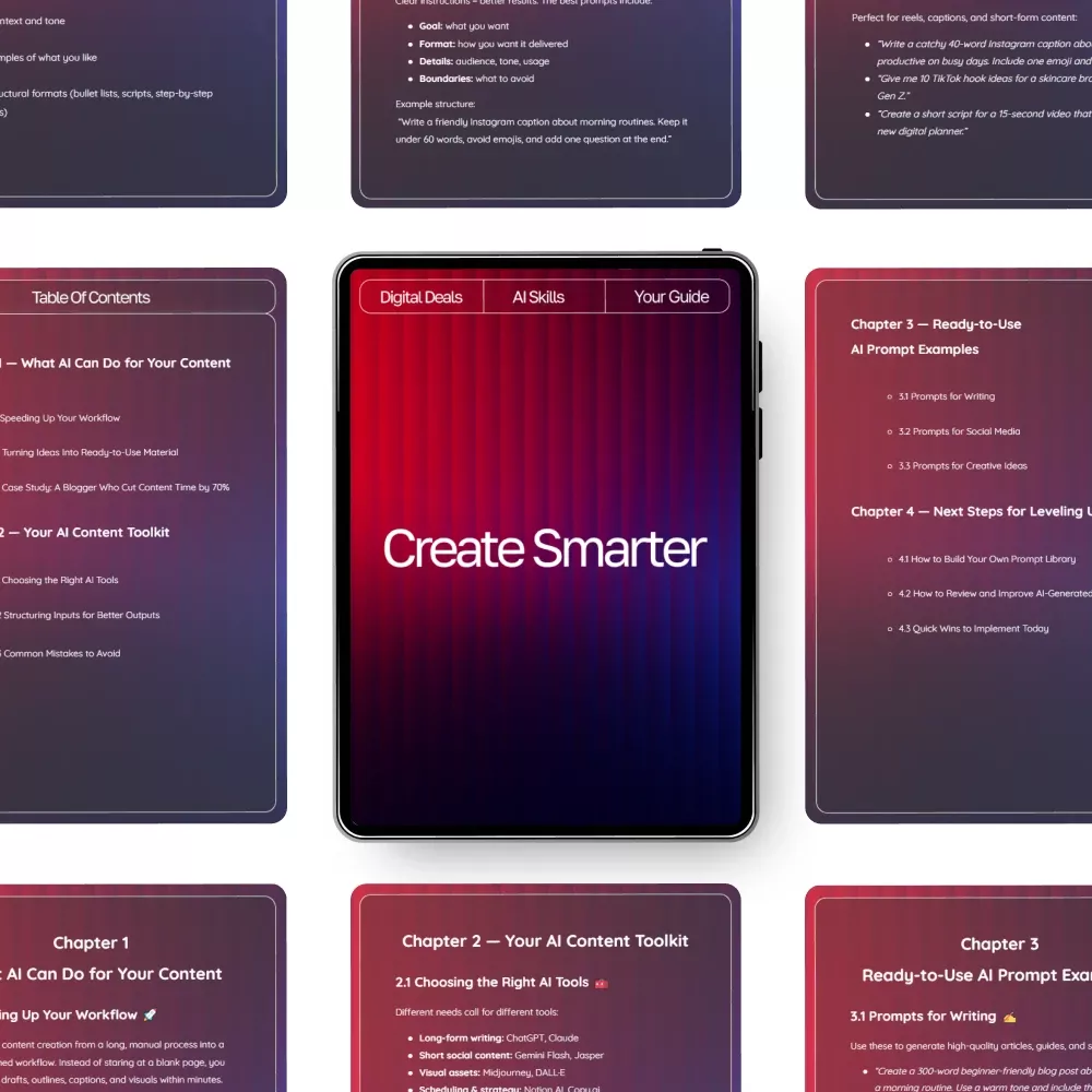 Unlock the true power of AI and transform the way you create. Create Smarter is a step-by-step digital guide designed to help you understand exactly how to use ai for content creation so you can produce high-quality work in a fraction of the time. Whether you’re a blogger, freelancer, business owner, or creative entrepreneur, this guide shows you how to turn AI into your most reliable content partner—no tech background required.