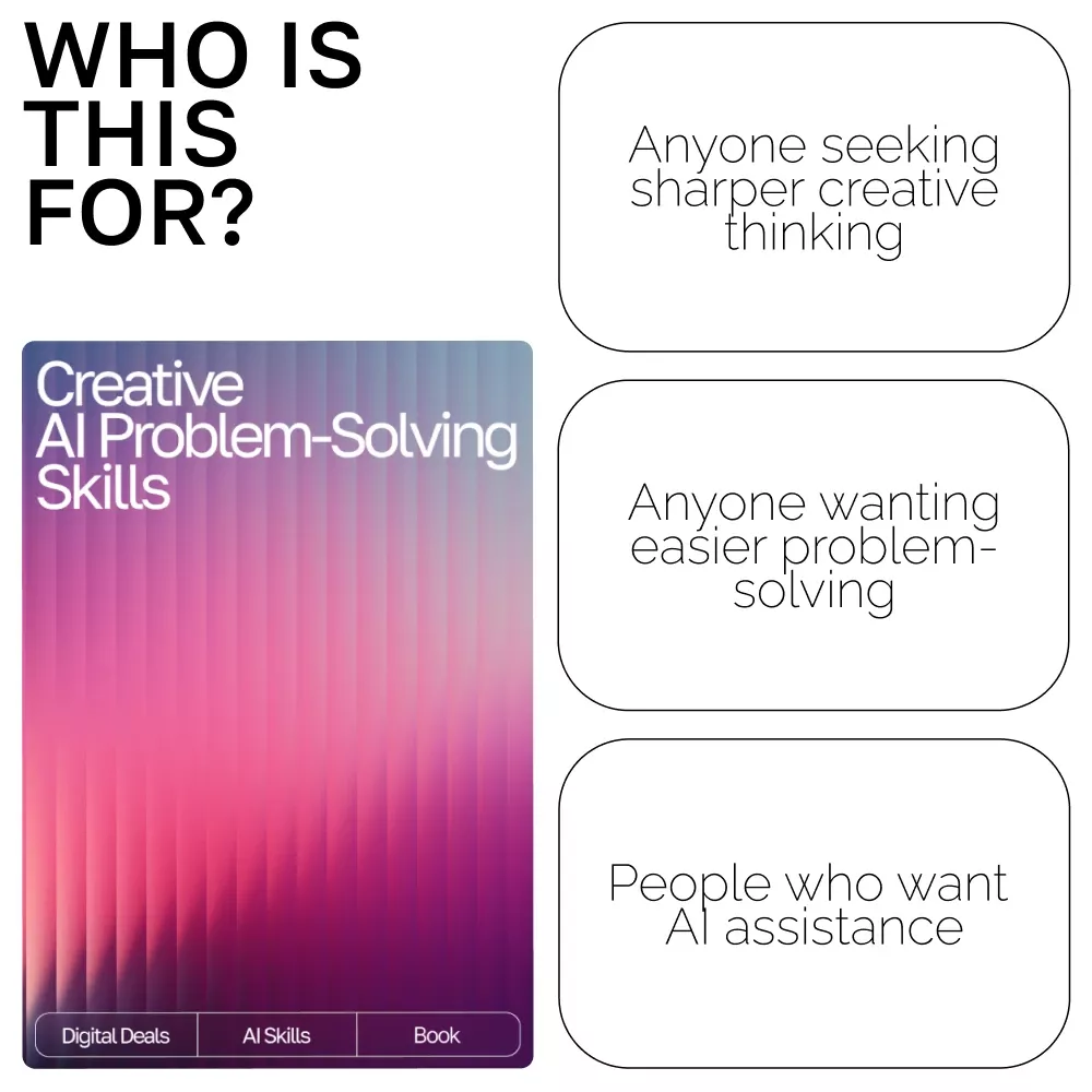 This ebook is perfect for creatives, entrepreneurs, business owners, students, marketers, designers, writers, and anyone curious about mastering ai skills for creative problem-solving. Whether you’re new to AI or already using it daily, the guide gives you actionable insights you can apply right away.