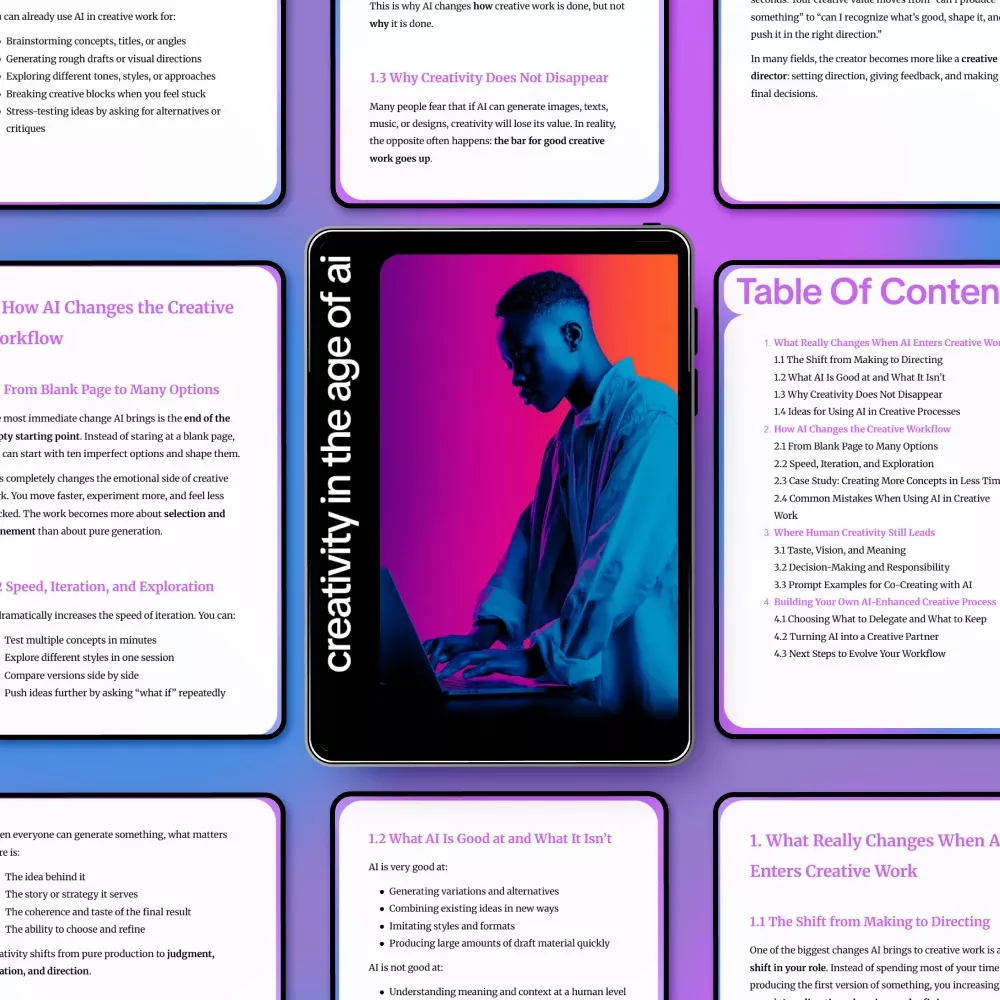 Transform your creative workflow today. Download Creativity in the Age of AI now and start harnessing AI to generate more ideas, iterate faster, and elevate your creative work to the next level!