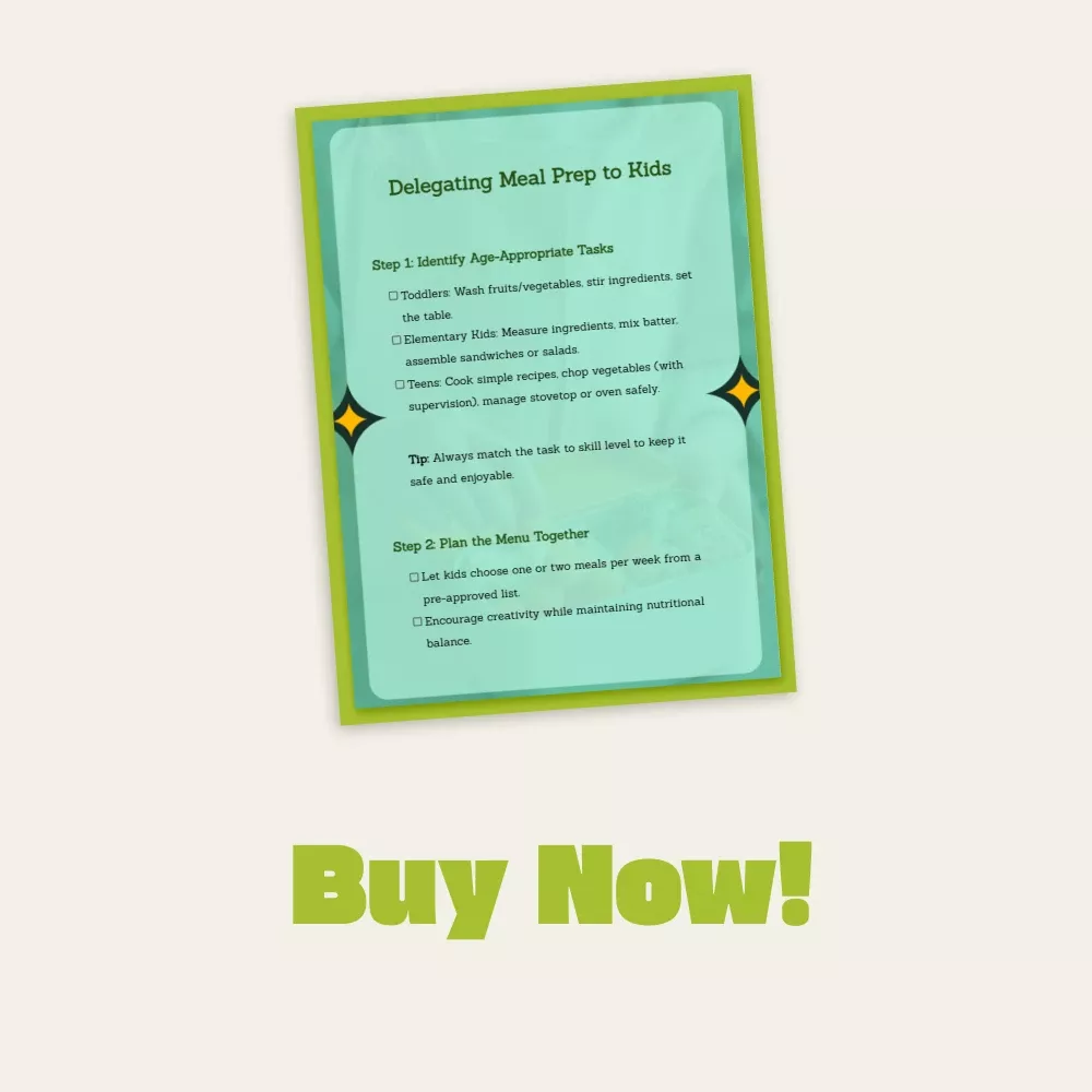 Download the Delegating Meal Prep to Kids checklist today and transform mealtime into a fun, educational experience for your family. Empower your little chefs, save time, and create lasting memories — one meal at a time.