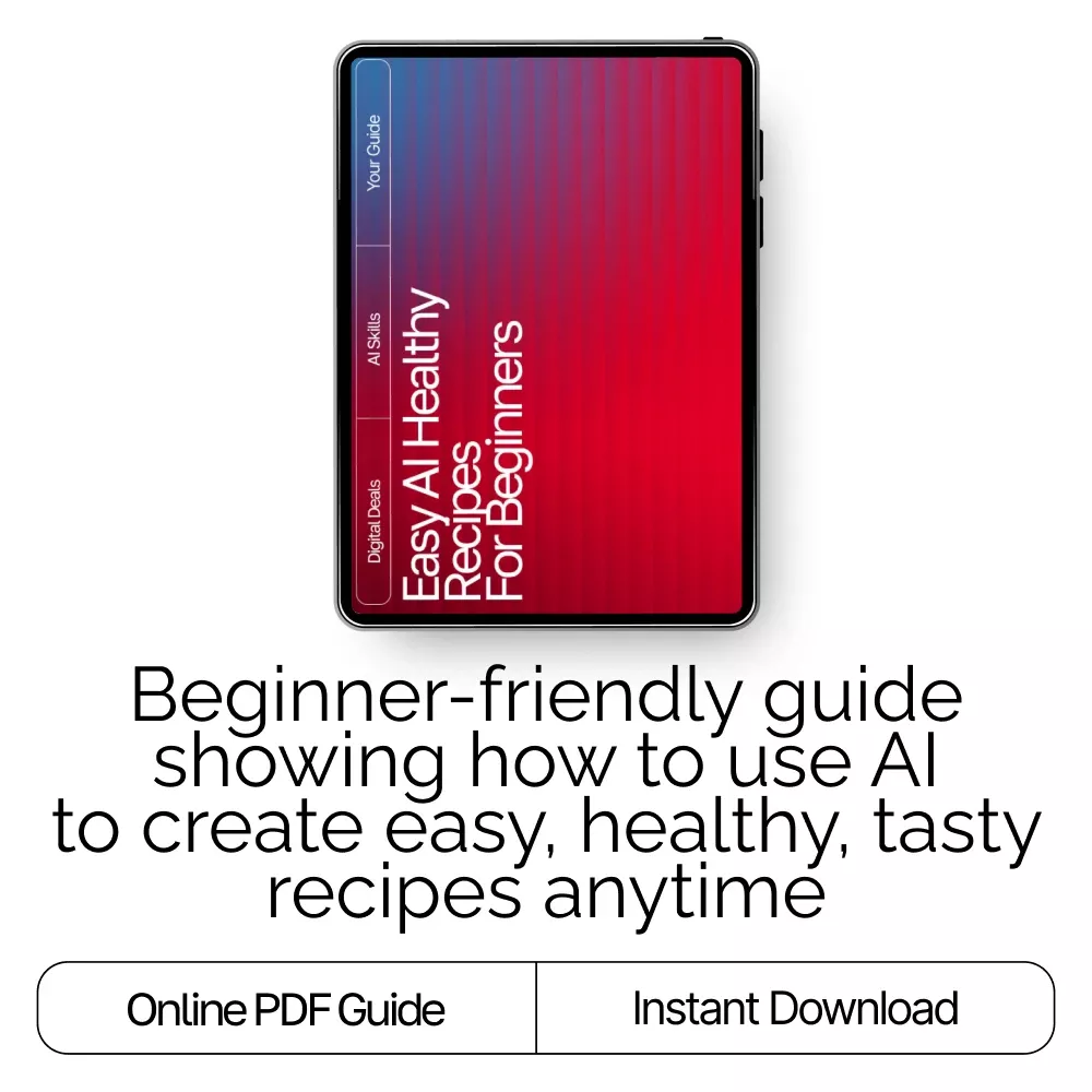 Discover how simple healthy cooking can be with Easy AI Healthy Recipes for Beginners, a step-by-step digital guide designed to help you unlock the power of AI in your kitchen. Whether you’re brand new to AI tools or just looking for an easier way to plan nutritious meals, this beginner-friendly resource walks you through everything—from talking to AI to generating flavorful, wholesome recipes that fit your lifestyle. With clear explanations, practical examples, and helpful healthy recipe ai suggestions for beginners, this guide makes smart, healthy cooking easier than ever.