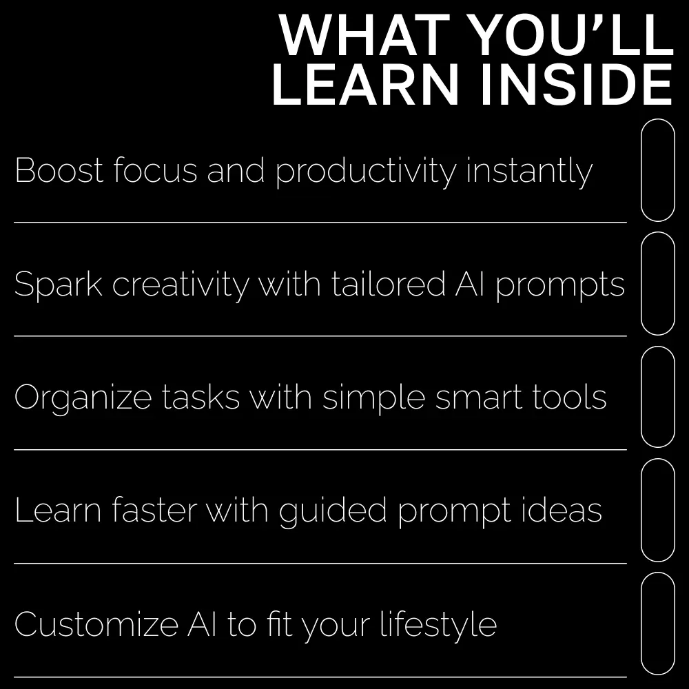 - Chapter 2: Ready-to-Use AI Prompt Templates – Access practical templates for productivity, creativity, organization, and learning.