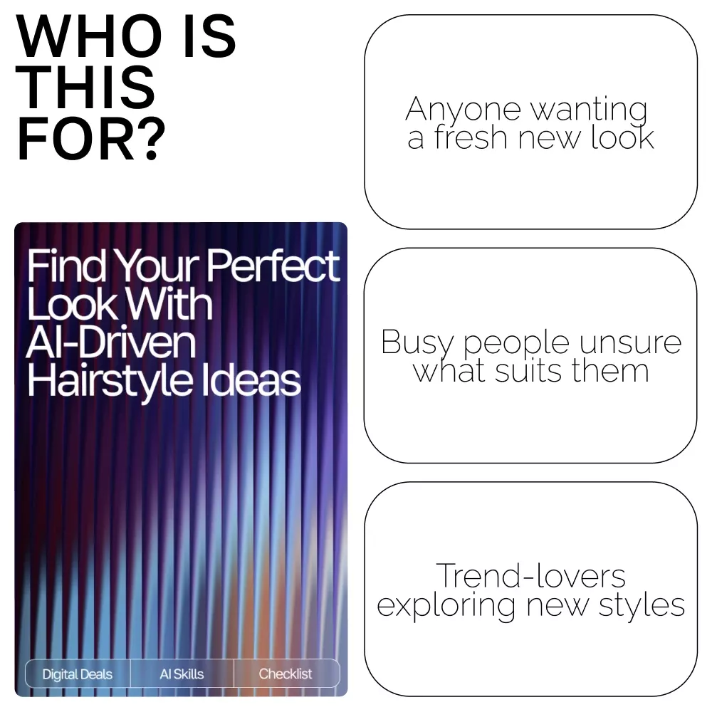 Unlike generic hairstyle guides, this digital download blends technology with creativity. It teaches you how to use ai help for finding new hairstyles to get personalized, professional-quality suggestions that evolve with your preferences. It’s like having a virtual stylist on call—organized into one simple, easy-to-follow checklist.