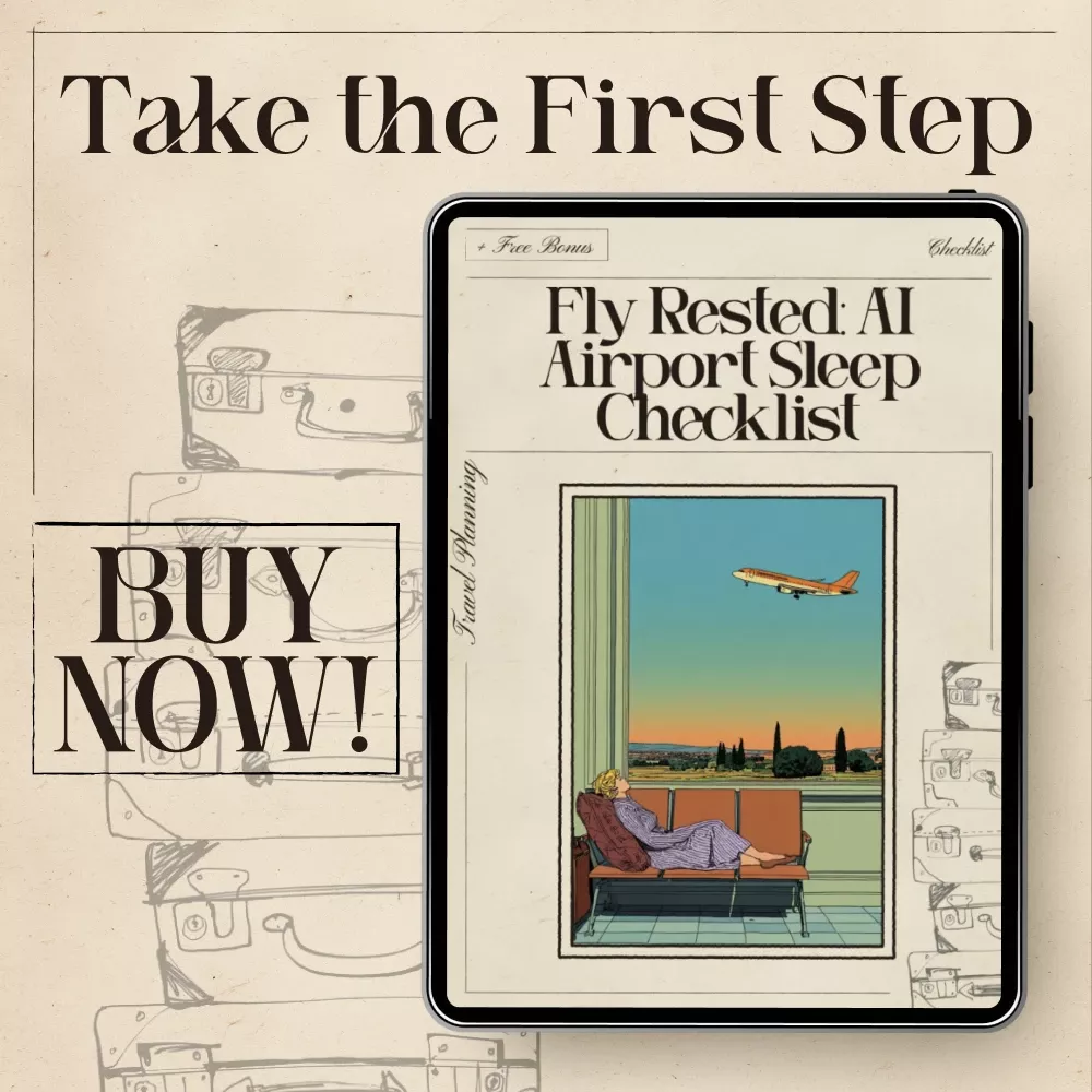 Say goodbye to restless layovers and uncomfortable airport nights with Fly Rested: AI Airport Sleep Checklist—your ultimate digital guide to resting safely and comfortably while you travel. Whether you’re waiting on a red-eye, stuck during a delay, or saving on a hotel, this checklist shows you how to use ai for sleeping in airports safely so you can recharge without worry. From finding secure, quiet corners to tracking your belongings with smart tools, this guide transforms airport downtime into restorative rest time—because a smart traveler never sacrifices sleep.