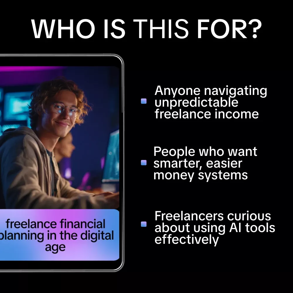 Freelance Financial Planning in the Digital Age is a practical, easy-to-follow digital guide designed to help modern freelancers take control of their finances using today’s smartest tools. If your income fluctuates, your expenses feel unpredictable, or spreadsheets just aren’t cutting it anymore, this resource shows you how to plan with confidence using ai for freelance financial planning. You’ll learn how to combine smart automation with human judgment so you can make better financial decisions without overwhelm.