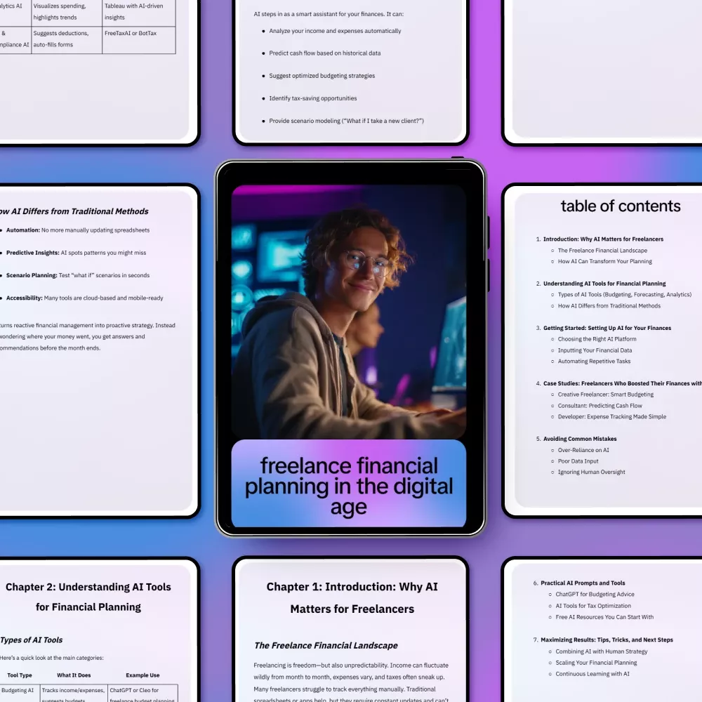 This guide walks you step-by-step through using AI to improve every part of your freelance financial life. Inside, you’ll find: