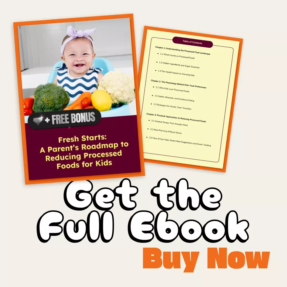 Are you ready to make a lasting change in your child’s nutrition without stress or guilt? Fresh Starts: A Parent’s Roadmap to Reducing Processed Foods for Kids is a comprehensive, easy-to-follow digital eBook designed to help parents take control of their family’s health. Whether you’re just starting out or looking for a structured approach to clean eating, this guide empowers you with knowledge, strategies, and practical tools to reduce processed foods and build a foundation of healthy habits your kids will love.