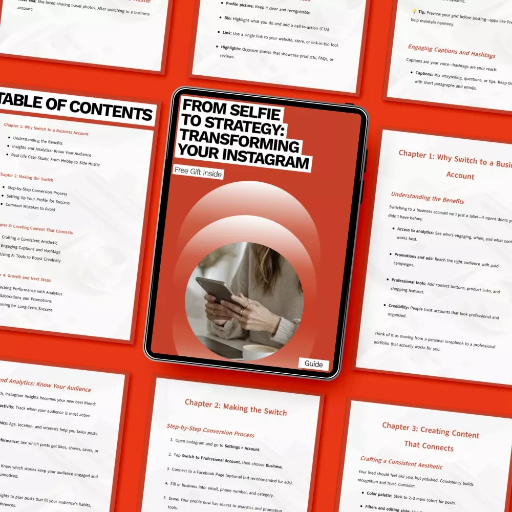 If you’re ready to stop posting randomly and start building something meaningful, From Selfie to Strategy: Transforming Your Instagram is your next step. Download instantly and take control of converting personal instagram to business with clarity, confidence, and a plan that grows with you.