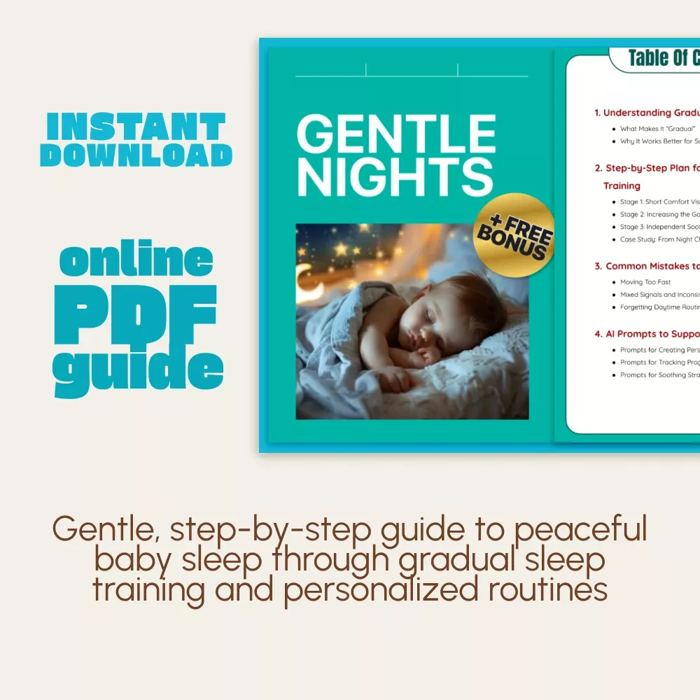 Say goodbye to stressful bedtime battles and hello to peaceful, predictable nights with Gentle Nights — a step-by-step digital guide designed for parents who want to teach their little ones how to sleep independently using a loving, low-stress approach. This isn’t another “cry-it-out” manual. It’s a proven, gradual sleep training guide that respects your baby’s need for comfort and connection while gently building healthy sleep habits that last.
