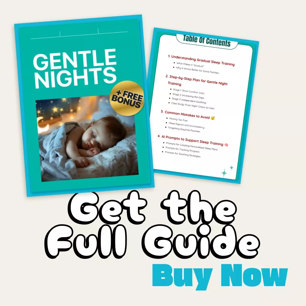 Perfect for parents of babies and toddlers, this beautifully designed eBook walks you through every stage of gentle night training — with real examples, clear steps, and even AI prompts to support sleep training so you can personalize your plan and track your progress effortlessly.