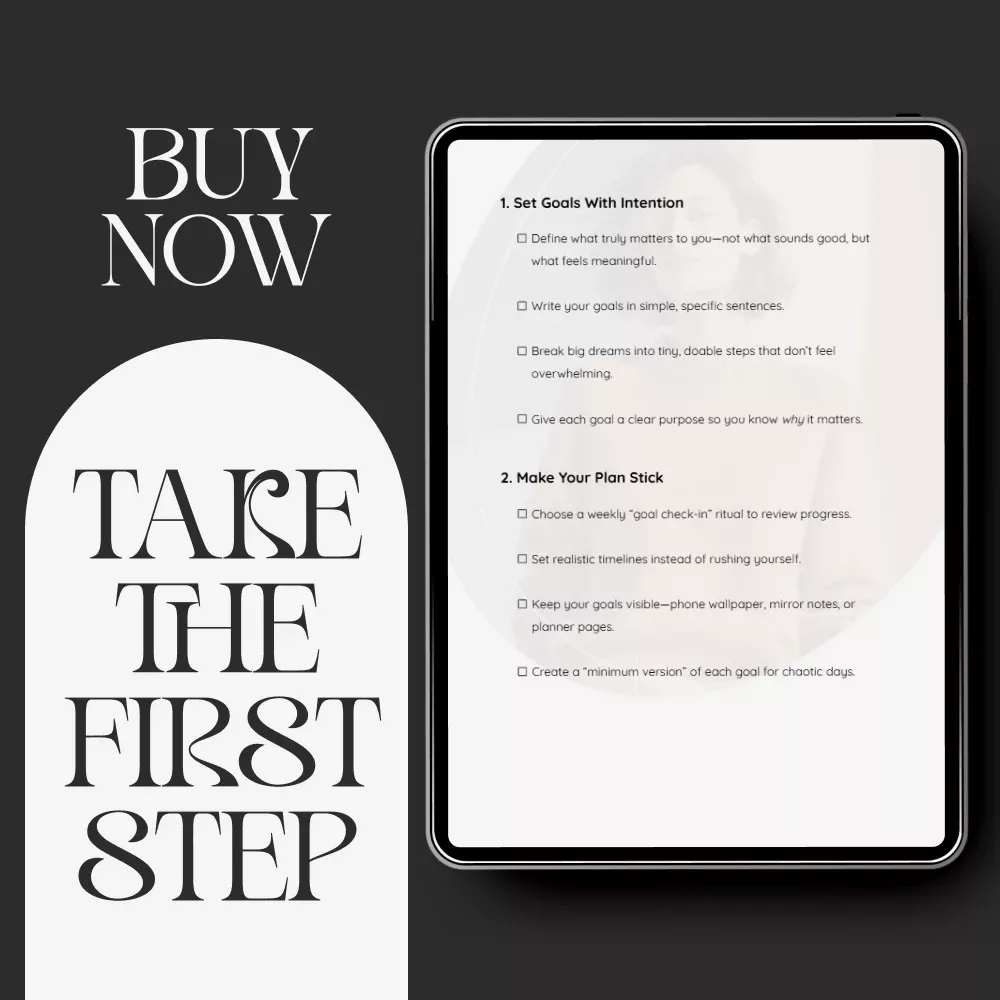 This guide is perfect for beginners, busy professionals, students, creatives, and anyone craving structure, clarity, and motivation. If you want goals that feel meaningful—not forced—and a plan you can actually stick to, this was made for you.