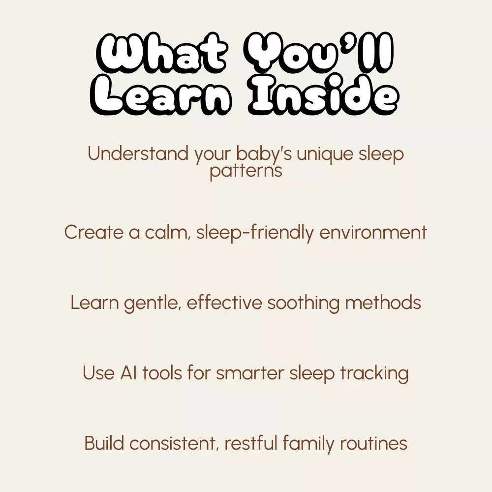 - Chapter 4: Using AI and Sleep Tracking Tools — Learn how to log and analyze sleep patterns using AI to create a personalized sleep support plan for your baby.