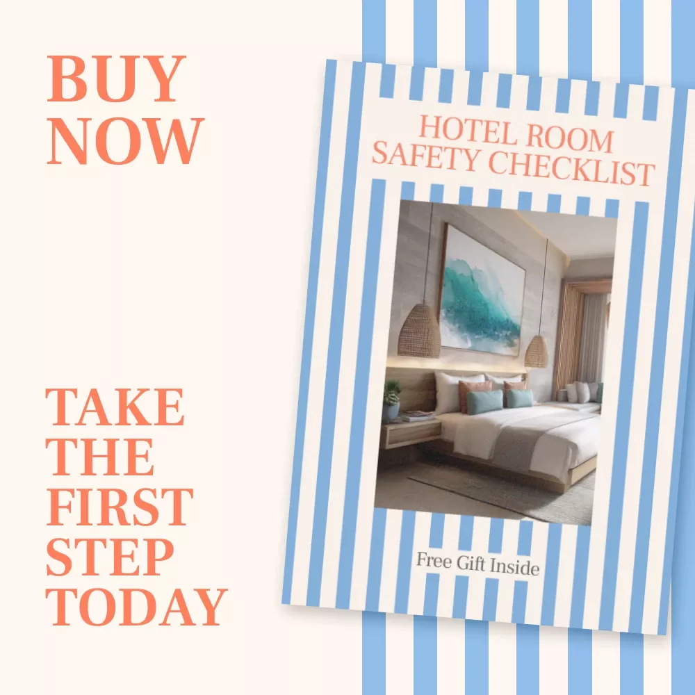 Travel should feel exciting, not stressful. The Hotel Room Safety Checklist is a simple, practical digital checklist designed to help travelers feel prepared and protected from the moment they book a hotel to the day they check out. Whether you travel solo, for work, or for fun, this easy-to-follow checklist walks you through exactly what to check and what to do so you know how to feel safe in your hotel room—without fear, overwhelm, or complicated advice.
