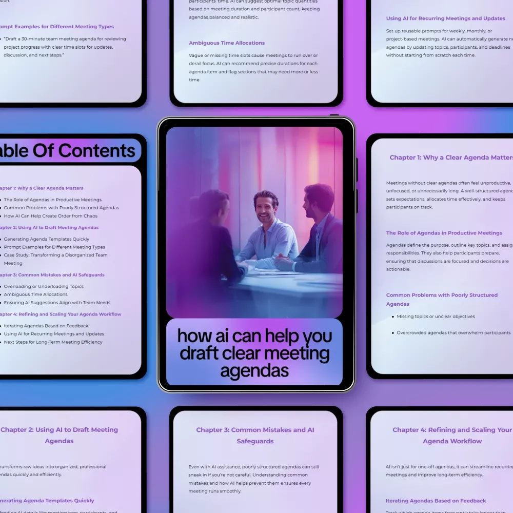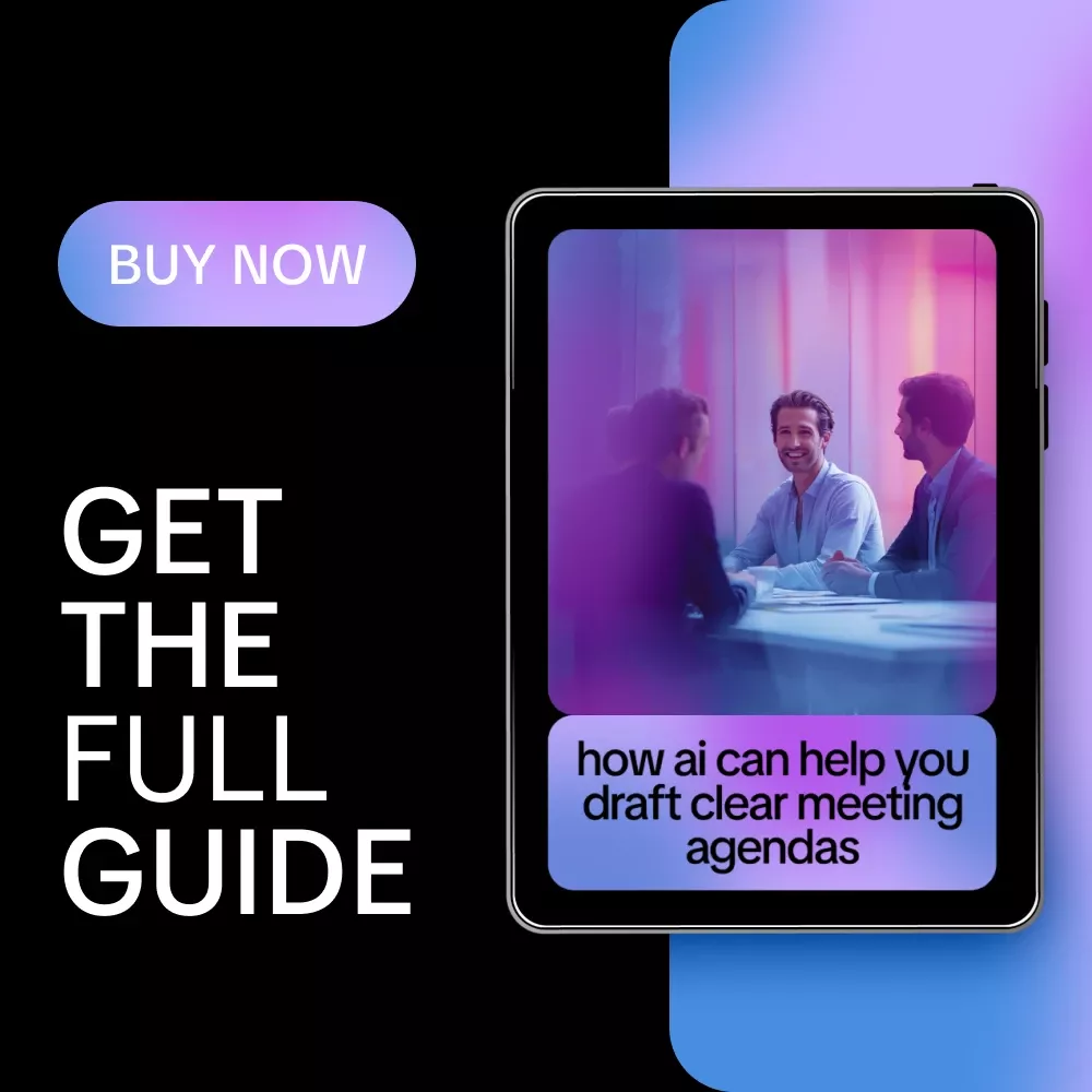 Unlike generic productivity resources, this guide focuses specifically on meeting agendas and shows how to work with AI thoughtfully—not blindly. You’ll learn how to refine AI outputs, avoid common mistakes, and ensure every agenda aligns with real human needs and team dynamics.