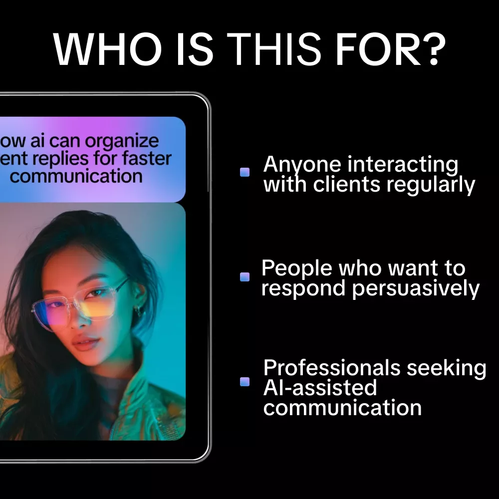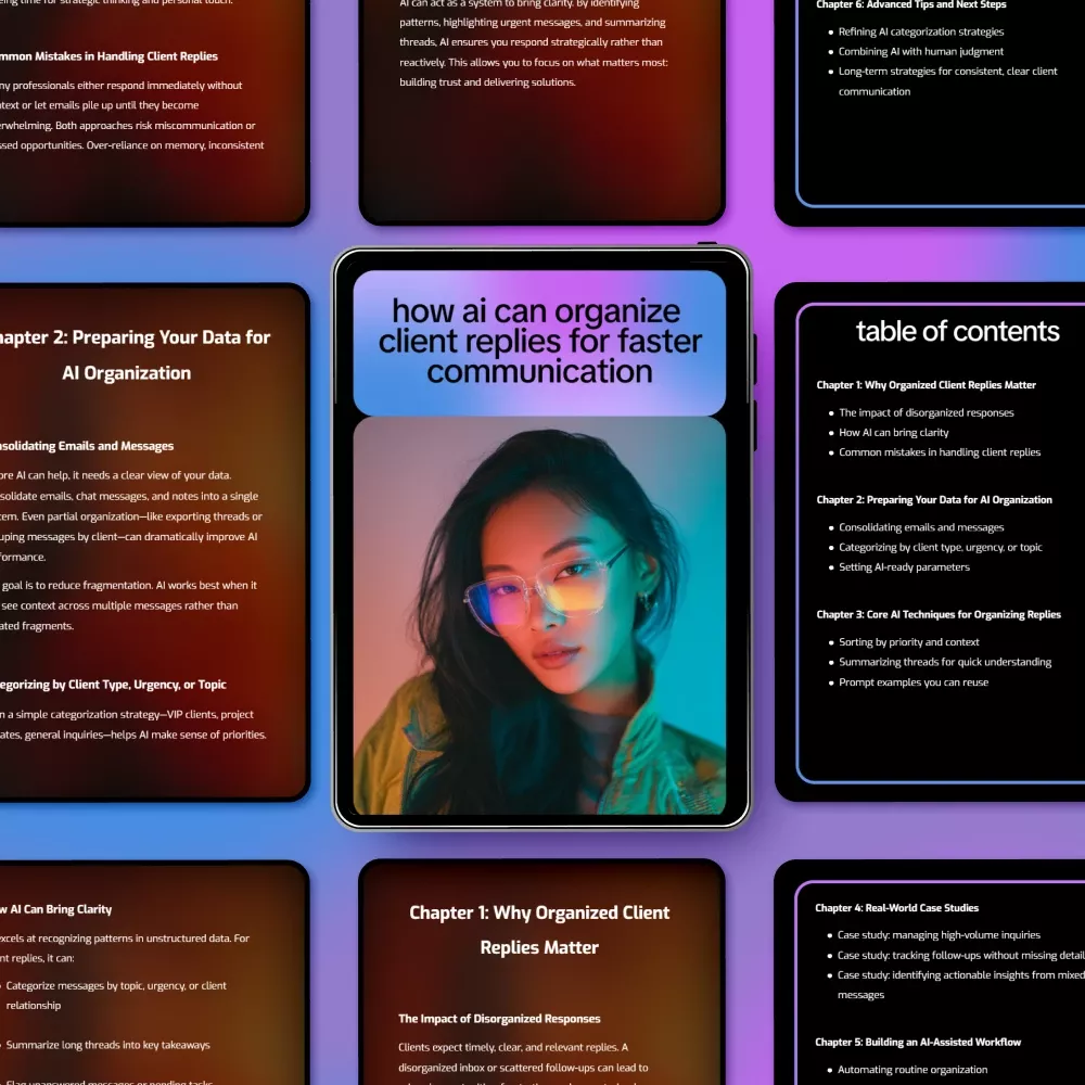 This digital guide is perfect for freelancers, consultants, small business owners, and team managers who handle multiple client communications daily. If you want to boost your productivity, reduce response stress, and harness the power of AI to organize client replies, this resource is made for you.
