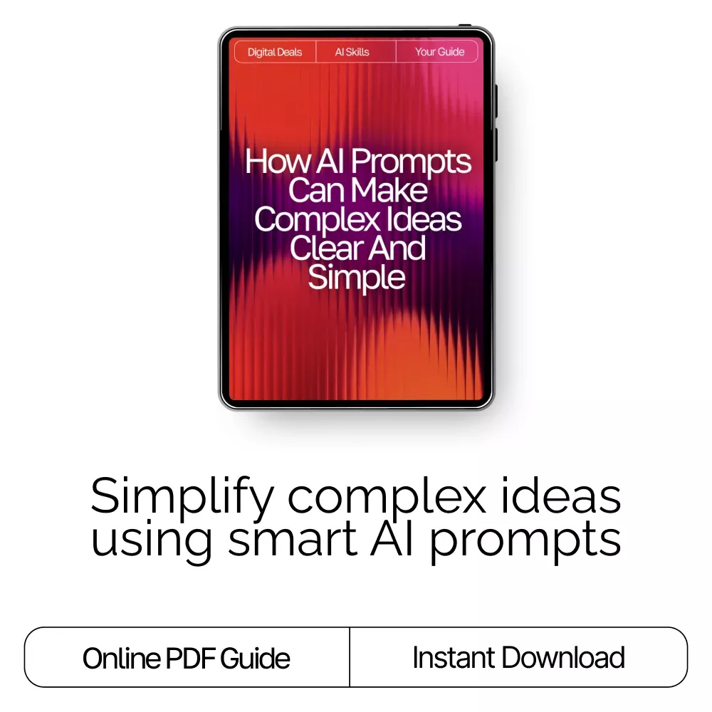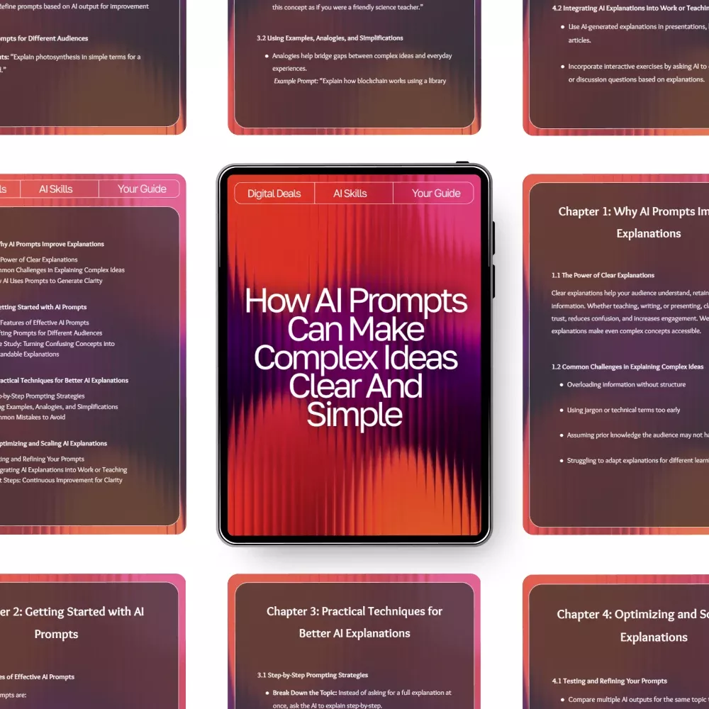 Struggling to explain complex ideas in a way others truly understand? “How AI Prompts Can Make Complex Ideas Clear and Simple” is the ultimate digital guide that shows you how to use ai prompts for better explanations—helping you communicate clearly, teach effectively, and simplify even the toughest topics. Whether you’re a teacher, creator, business owner, or lifelong learner, this guide makes it easy to harness AI’s power to turn confusion into clarity.