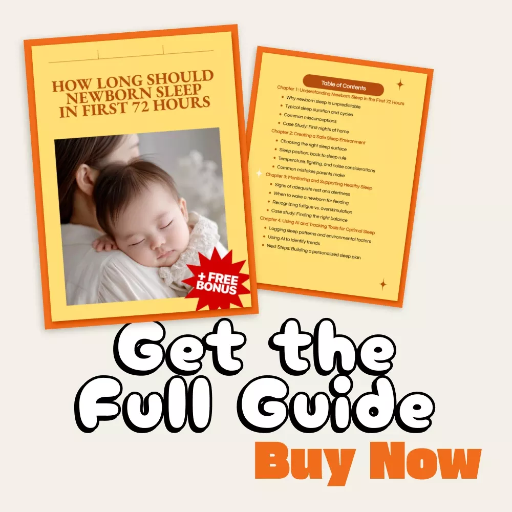 - Chapter 1: Understanding Newborn Sleep in the First 72 Hours – Learn why newborn sleep is unpredictable, what normal sleep cycles look like, and common myths that cause confusion.