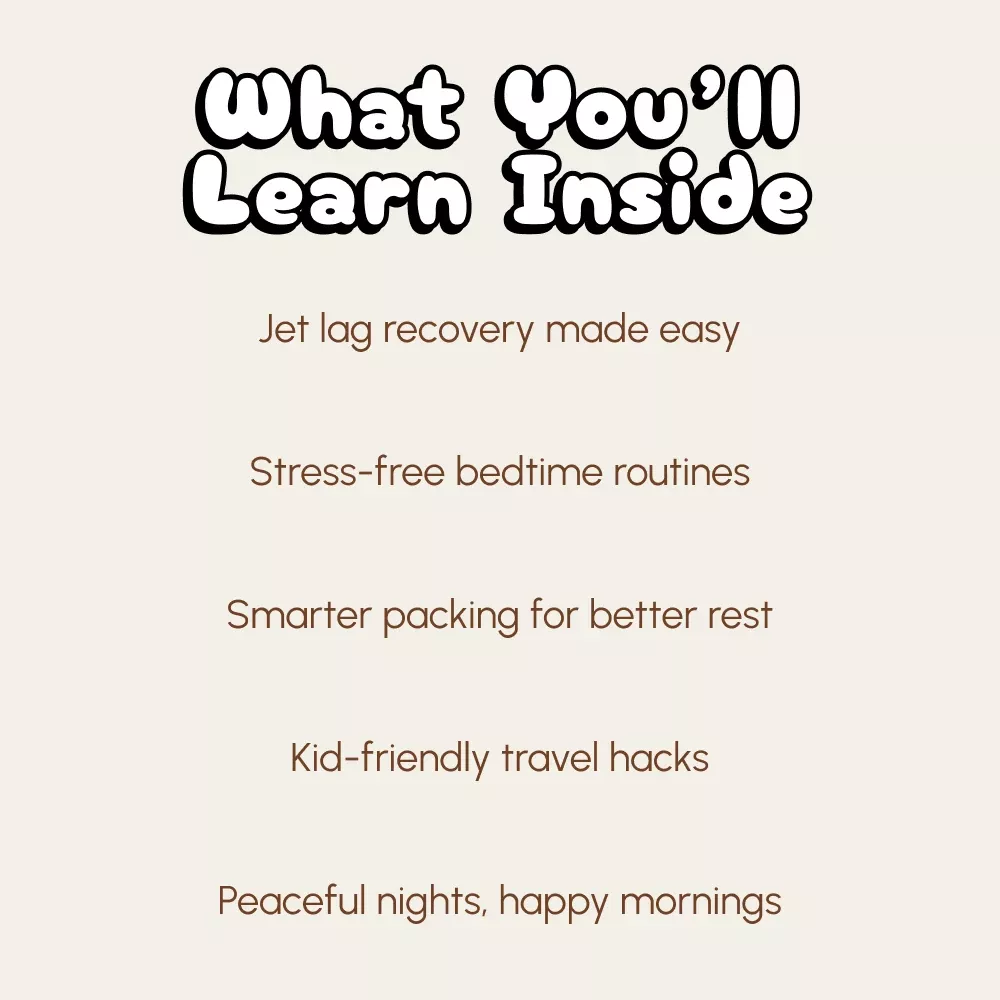 - Chapter 4 – Keeping the Calm After the Trip: Re-adjust to home sleep, build resilience in kids, and create long-term flexible sleep habits.