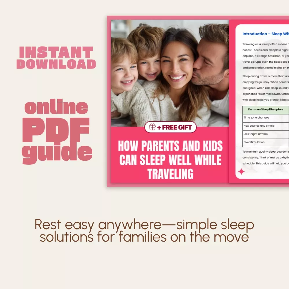 Traveling with children can be magical—until bedtime. The How Parents and Kids Can Sleep Well While Traveling digital guide is your trusted companion for peaceful travel nights. Designed for parents who want to make every trip restful, this easy-to-follow resource teaches how to maintain sleep during travel nights while keeping the adventure stress-free. Whether you’re flying overseas or taking a weekend road trip, this downloadable guide helps families enjoy consistent, quality sleep no matter where they rest their heads.