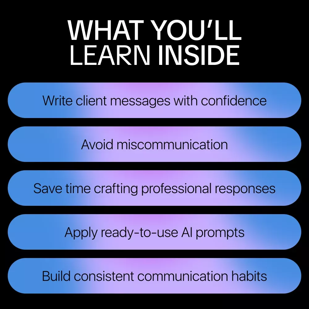 - Develop consistent AI habits to make every client interaction smoother and more effective.