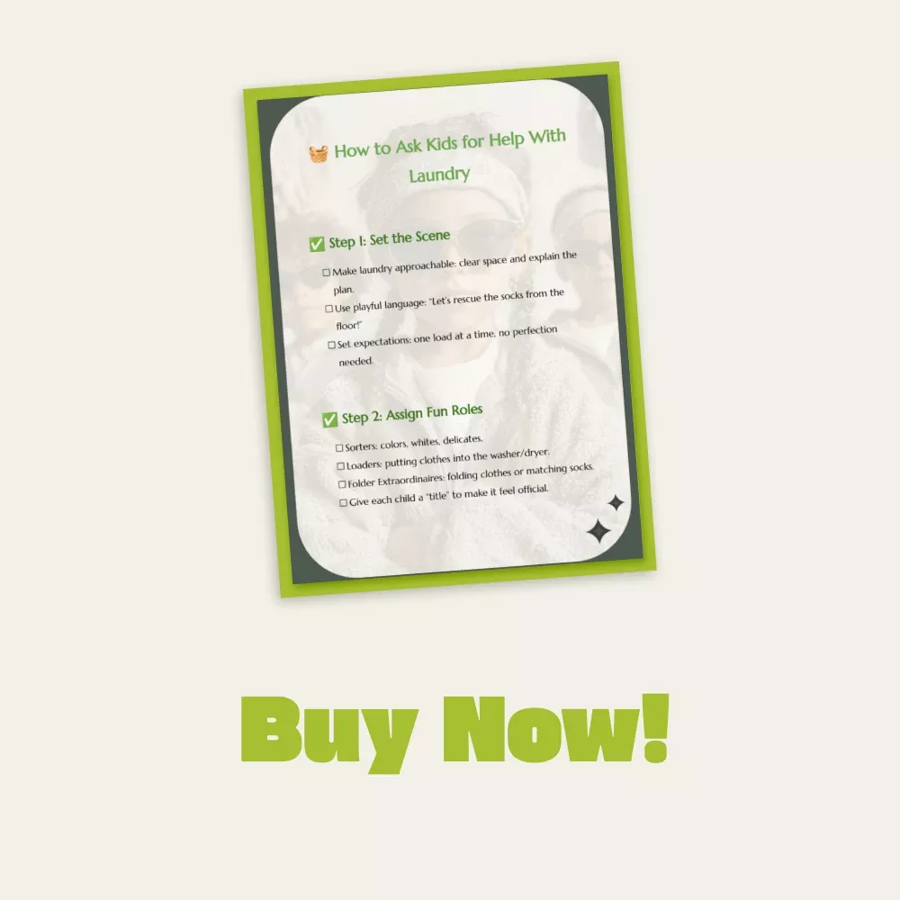 Turn laundry day into a moment of teamwork, laughter, and learning with How to Ask Kids for Help With Laundry — a digital guide designed to help parents turn this everyday task into an enjoyable routine for kids. Whether you’re teaching toddlers or empowering older kids, this printable eBook helps you make chores fun, structured, and rewarding. Perfect for busy parents who want to nurture independence and responsibility while keeping the household running smoothly.