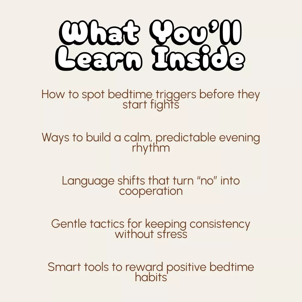 - Chapter 1: Understanding the Bedtime Battle – The psychology behind bedtime resistance, common triggers, and a real-life case study.