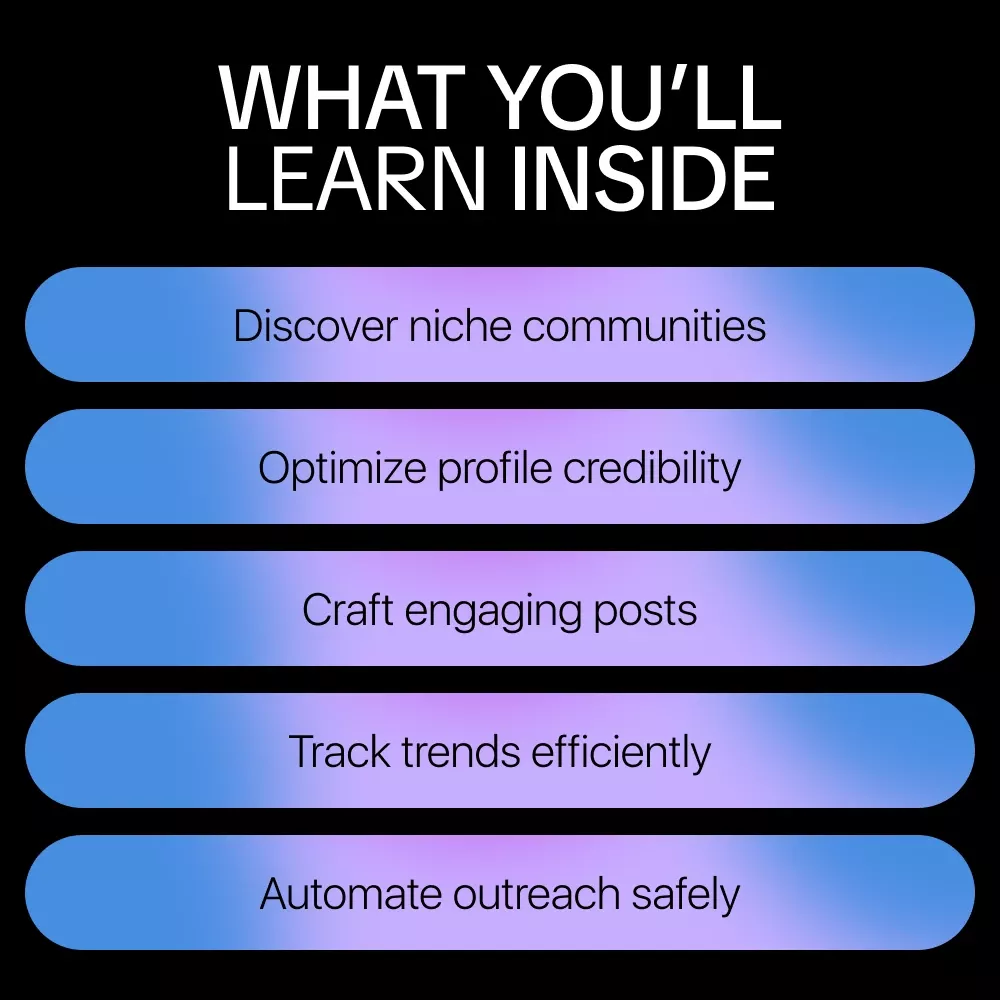 • Chapter 3: Engagement Strategies – Learn to participate actively without spamming, track trends and hot topics using AI tools, build meaningful relationships, and see how Reddit comments can turn into projects.