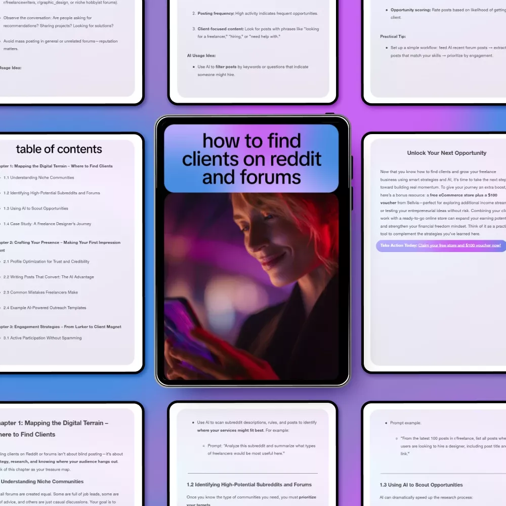 • Chapter 1: Mapping the Digital Terrain – Understand niche communities, identify high-potential subreddits and forums, and learn how to use AI to scout opportunities, featuring a real-life freelance designer case study.