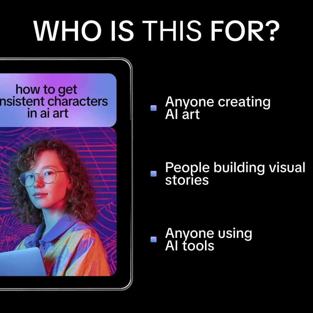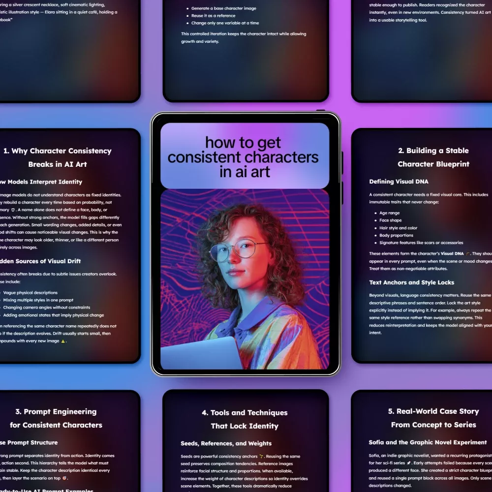 This ebook is ideal for AI artists, illustrators, writers, game designers, content creators, and anyone learning how to get consistent characters in ai art. Whether you’re a beginner or already generating images daily, the strategies scale with your skill level.