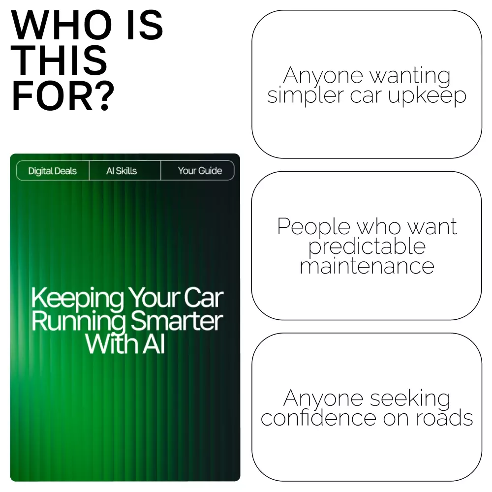 Unlike generic car care ebooks, this resource blends real-world vehicle know-how with approachable tech guidance. You’ll learn not just what to do, but why it matters—and how AI can simplify the process without requiring advanced skills or complicated apps. It’s practical, friendly, and built for people who want results, not jargon.