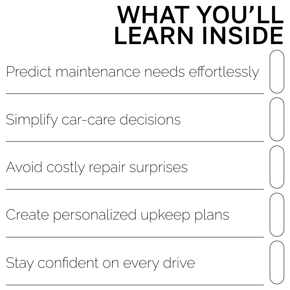 This digital guide is perfect for everyday drivers, new car owners, busy families, and anyone who wants reliable, organized, and predictable car maintenance without guesswork. If you love efficiency, hate surprise repairs, or want to leverage technology for real-life benefits, this was made for you.