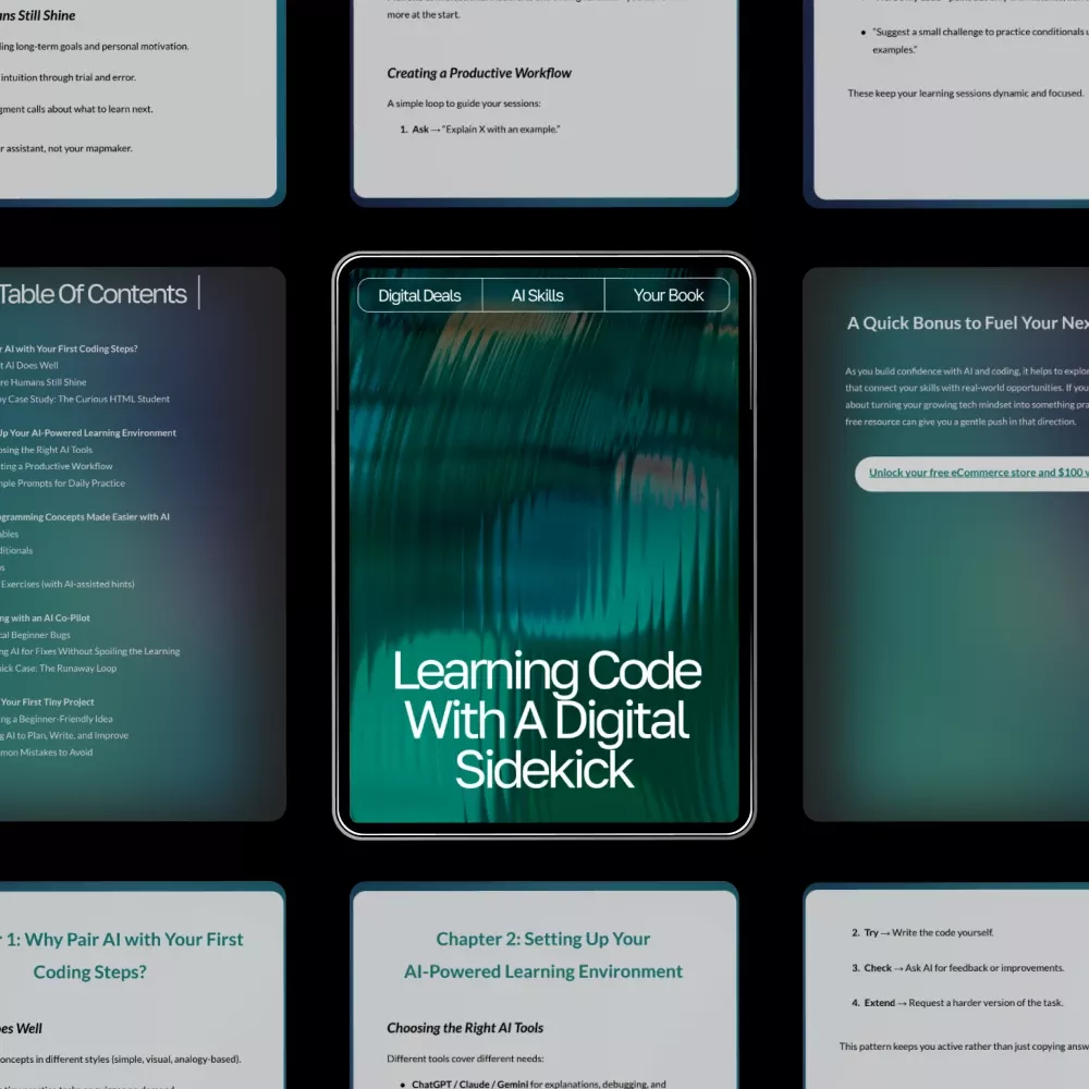 Meet your new study partner: Learning Code with a Digital Sidekick, an easy-to-follow, beginner-friendly eBook that shows you exactly how to use ai to learn programming basics. Whether you’ve tried coding before or you’re starting from scratch, this digital guide helps you build confidence by pairing your early learning steps with the power of AI. Clear explanations, real examples, and simple workflows help you stop guessing and start progressing.