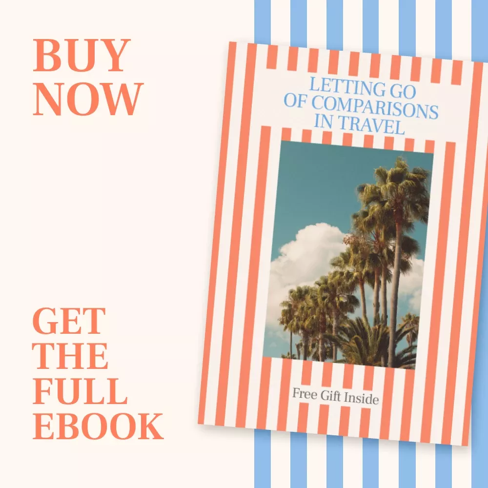 This eBook is perfect for anyone who struggles with the constant comparisons in the travel world. Whether you’re a seasoned traveler or planning your first big trip, “Letting Go of Comparisons in Travel” will help you find freedom from unrealistic expectations and focus on the true value of your own adventures. If you’re tired of measuring your experiences against the highlight reels on social media, this guide is your invitation to embrace the journey that’s uniquely yours.
