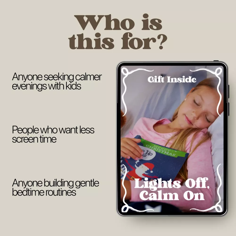 If you’re ready to turn off the screens and turn on calm, this ebook is your next step. Download Lights Off, Calm On today and start building peaceful, screen-free evenings your whole family can enjoy.