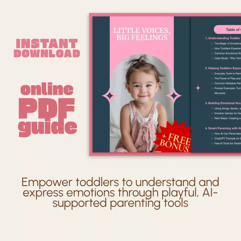 Most parenting guides focus only on discipline or behavior. This digital download takes a deeper, heart-centered approach—helping you understand how toddlers experience emotions and giving you tools to build empathy, communication, and confidence from the start. Plus, the section on AI parenting support offers cutting-edge ideas that no other resource provides.