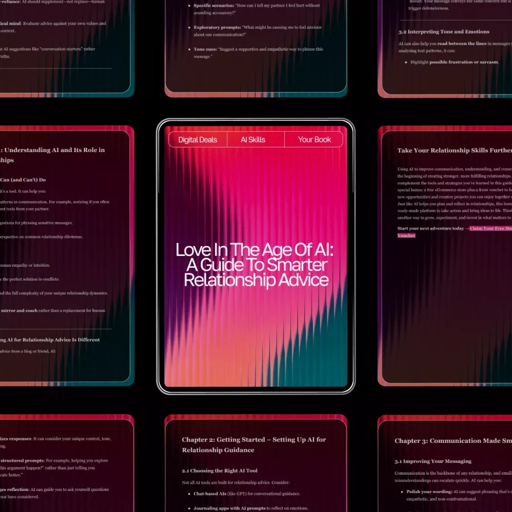 This eBook is perfect for singles, couples, communicators, and anyone curious about integrating AI into their personal life. If you want practical, non-technical guidance on blending technology with emotional intelligence—this is for you.