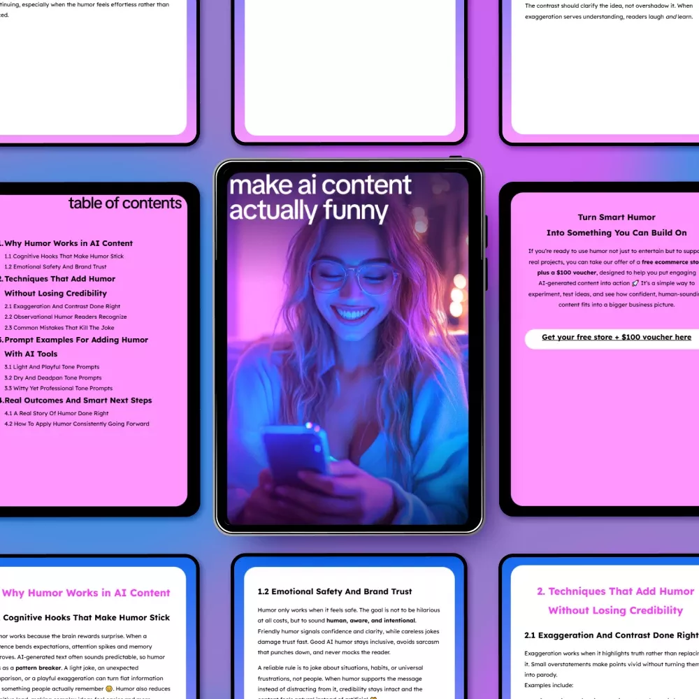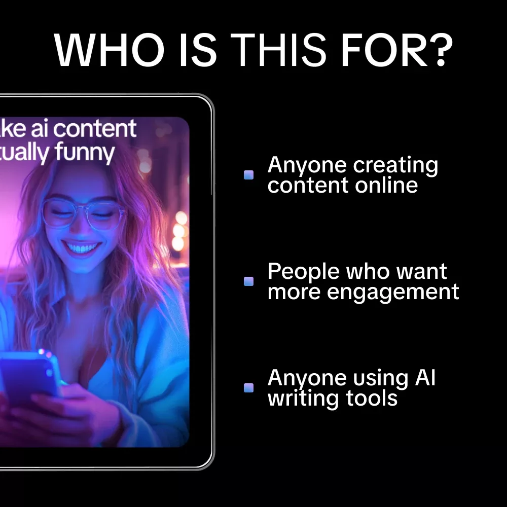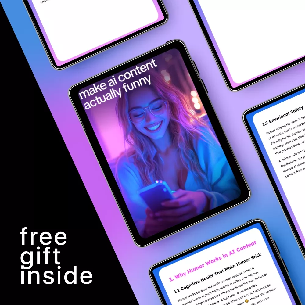 Unlike generic guides on AI content creation, Make AI Content Actually Funny focuses exclusively on the art and science of humor. From cognitive tricks to tone-specific prompts and real-world examples, this guide gives you actionable tools to inject humor into AI generated content that works consistently—no trial and error required.