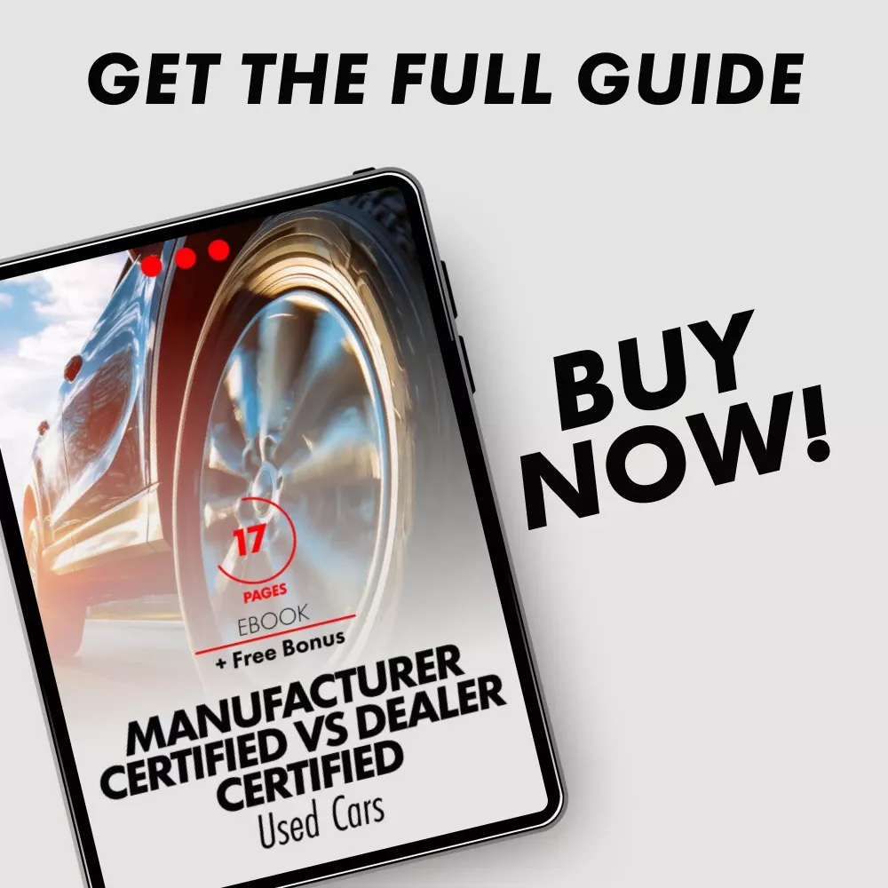 When it comes to buying a used car, the decision between manufacturer certified vs dealer certified can be overwhelming. Our expertly written eBook, “Manufacturer Certified vs Dealer Certified Used Cars,” is here to help you make an informed and confident purchase. This comprehensive guide provides a side-by-side comparison of both options, breaking down the pros, cons, and key differences. Whether you’re a first-time buyer or a seasoned car shopper, this eBook will ensure you have all the knowledge you need to make the best choice.