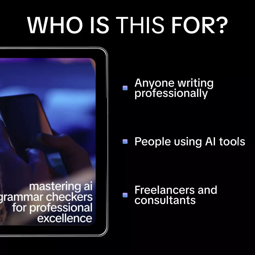 Download Mastering AI Grammar Checkers for Professional Excellence today and start transforming how you write, edit, and communicate professionally. Click purchase now and turn AI into your most reliable writing partner.