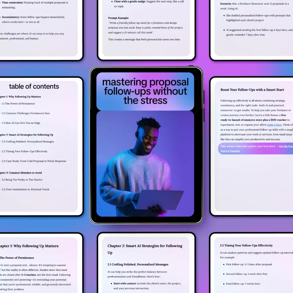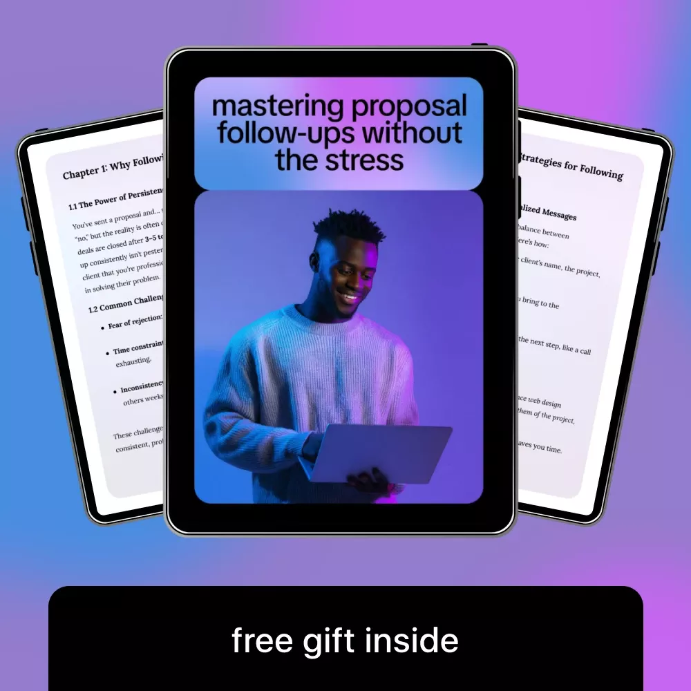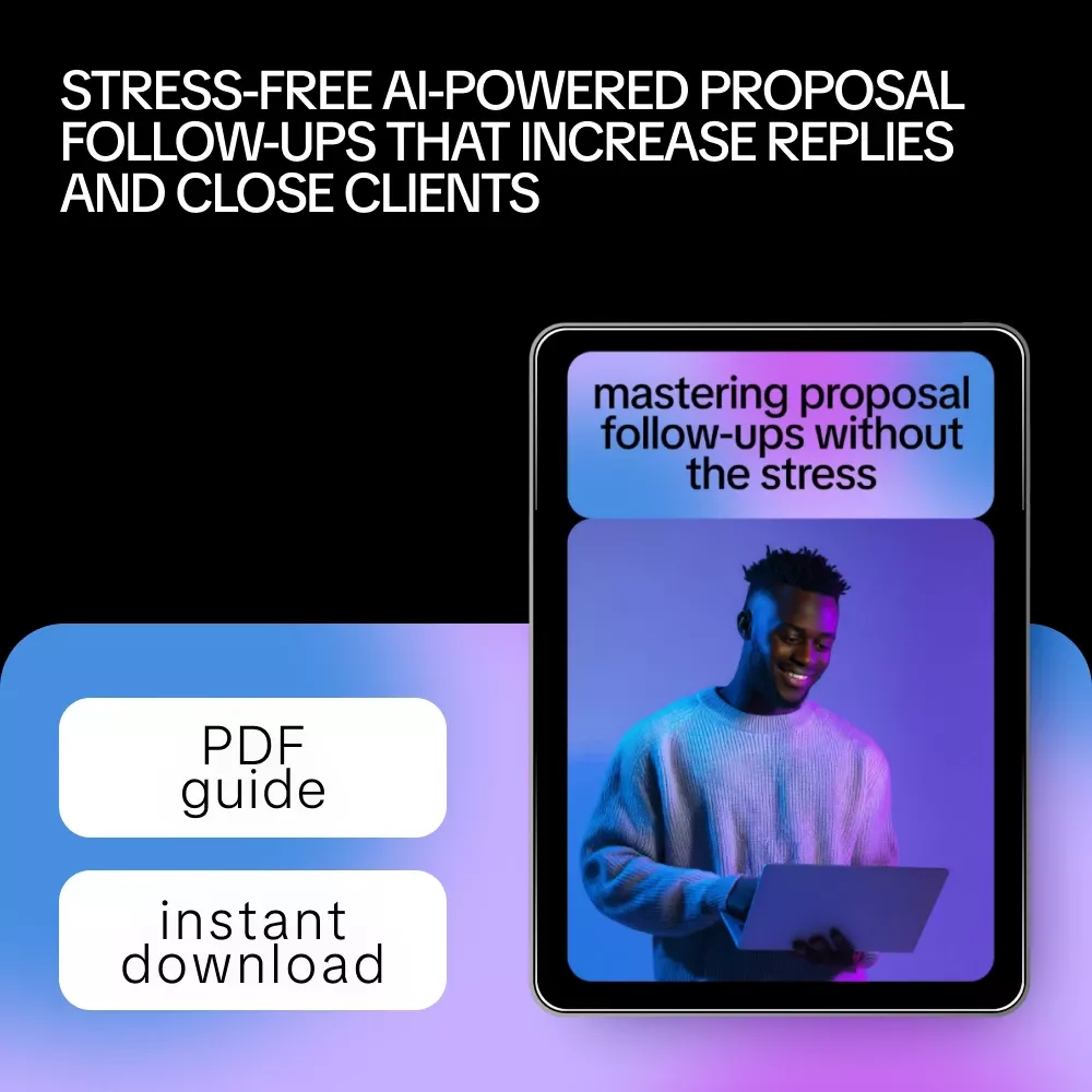 Following up on proposals shouldn’t feel uncomfortable, time-consuming, or stressful—but for many freelancers and service providers, it does. Mastering Proposal Follow-Ups Without the Stress is a practical, easy-to-follow digital guide designed to help you stay persistent without sounding pushy. By using proven strategies and ai for following up on proposals, this guide shows you how to turn silence into responses and proposals into paid projects, all while keeping your communication polished, professional, and human.