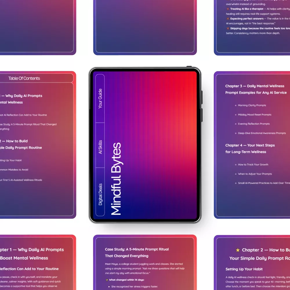 Discover a gentler, more intentional way to care for your mind with Mindful Bytes, a beautifully structured digital guide designed to help you build a grounding, uplifting routine using daily mental wellness prompts with ai. Whether you’re new to mindful reflection or looking for a simple way to deepen your emotional awareness, this guide gives you a clear, friendly framework for using AI to support your wellbeing—without overwhelm, confusion, or complexity.