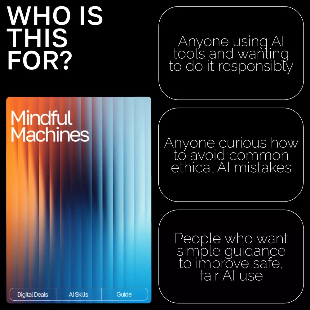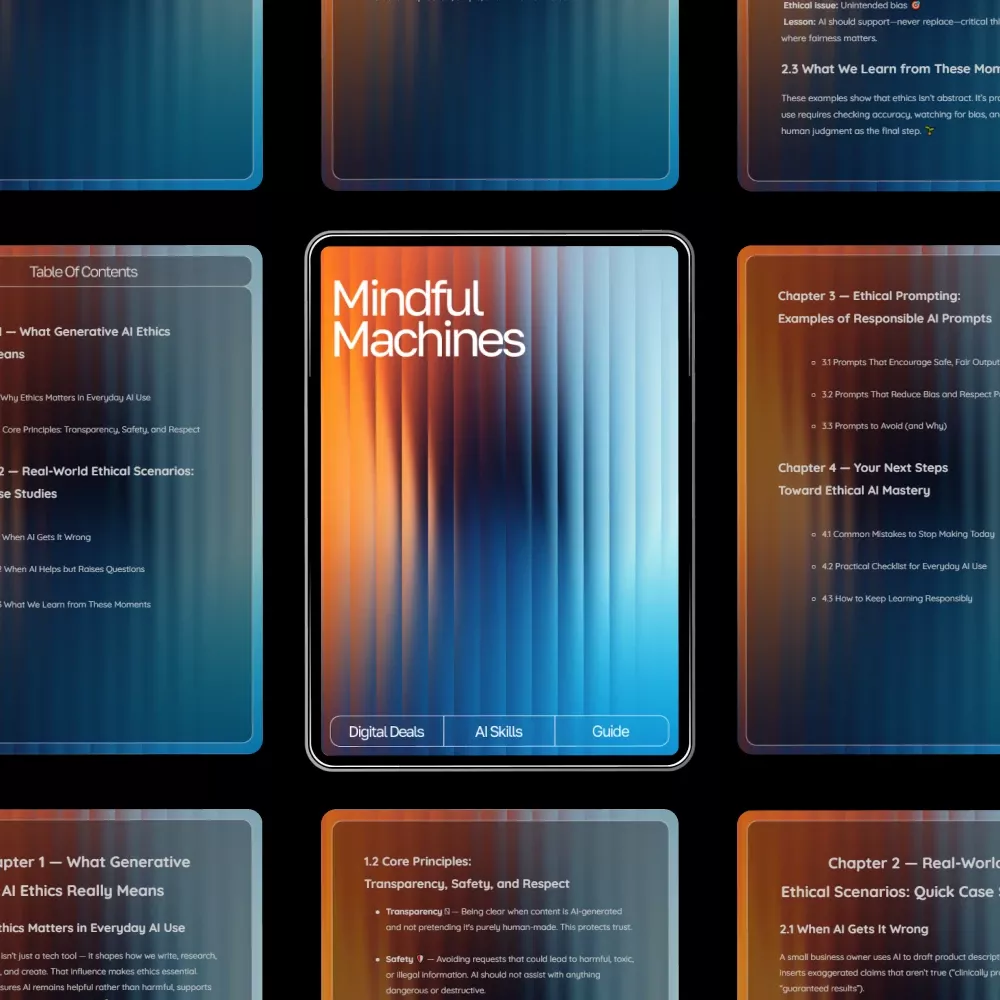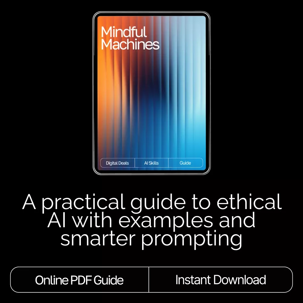 Download Mindful Machines today and take your first step toward confident, ethical, and empowered AI use. Whether you’re writing prompts, creating content, or exploring new tools, this guide helps you do it with purpose—and clarity.