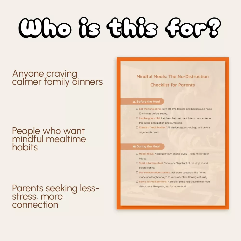 Download Mindful Meals: The No-Distraction Checklist for Parents today and rediscover the joy of being truly present around the table. Make every meal a mindful moment — one checklist at a time.