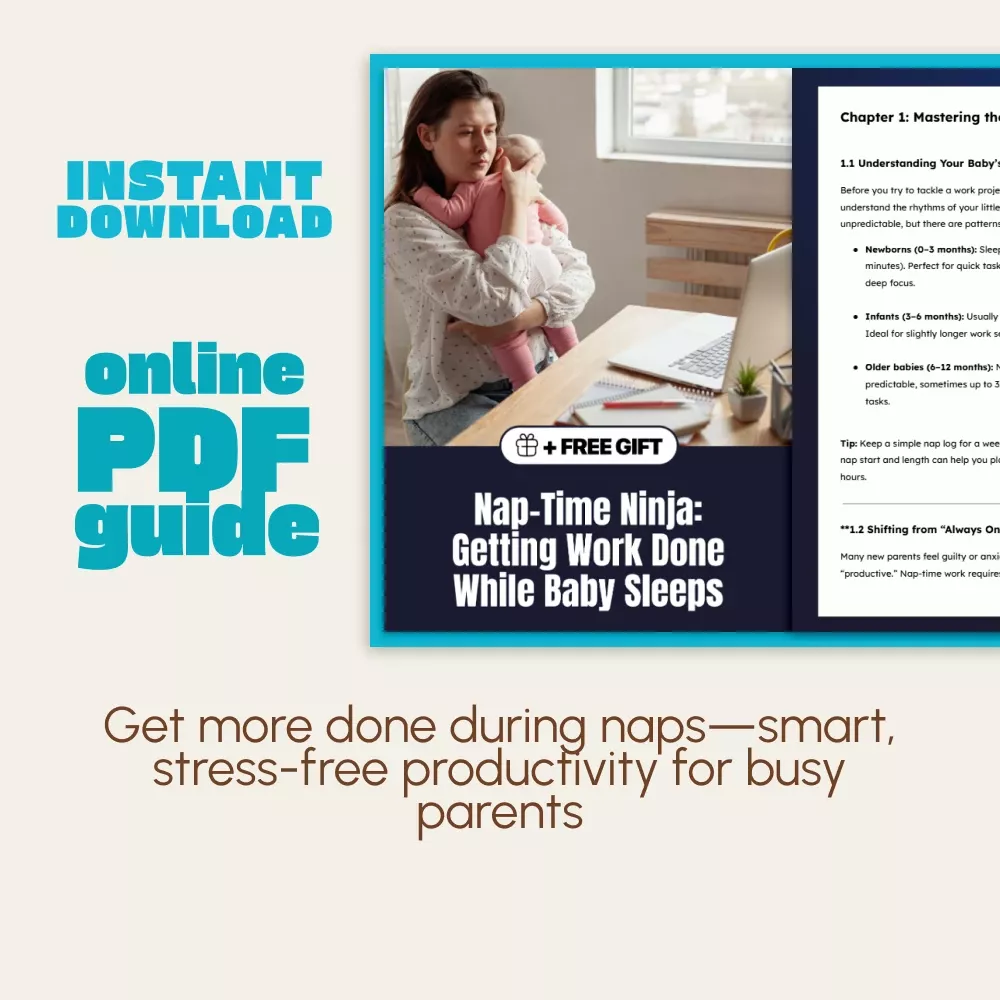 Stop wishing for more hours in the day and start making the most of the ones you have. Download Nap-Time Ninja: Getting Work Done While Baby Sleeps today and learn how to get work done while baby naps—smarter, faster, and stress-free. Your productive nap-time routine starts now!