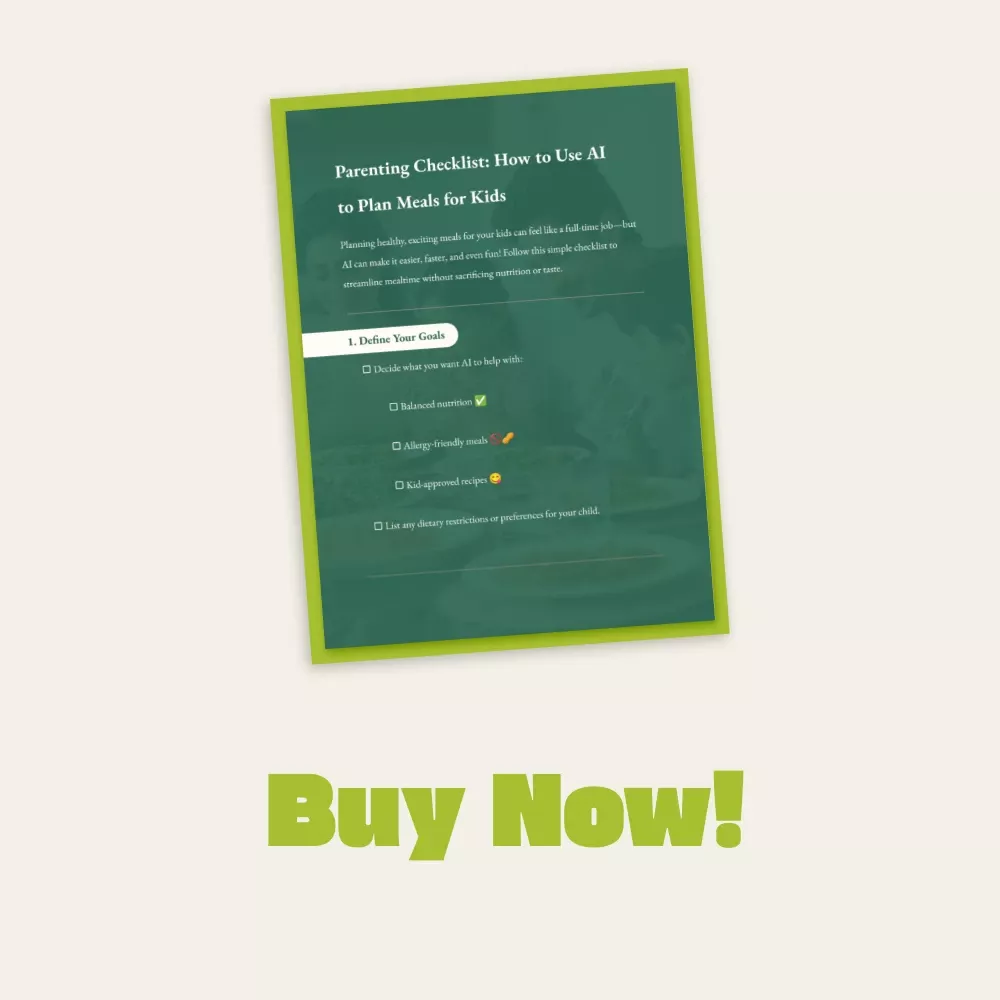 Download the Parenting Checklist: How to Use AI to Plan Meals for Kids now and transform your meal planning routine. Make mealtime smoother, smarter, and more joyful—one AI-assisted recipe at a time.